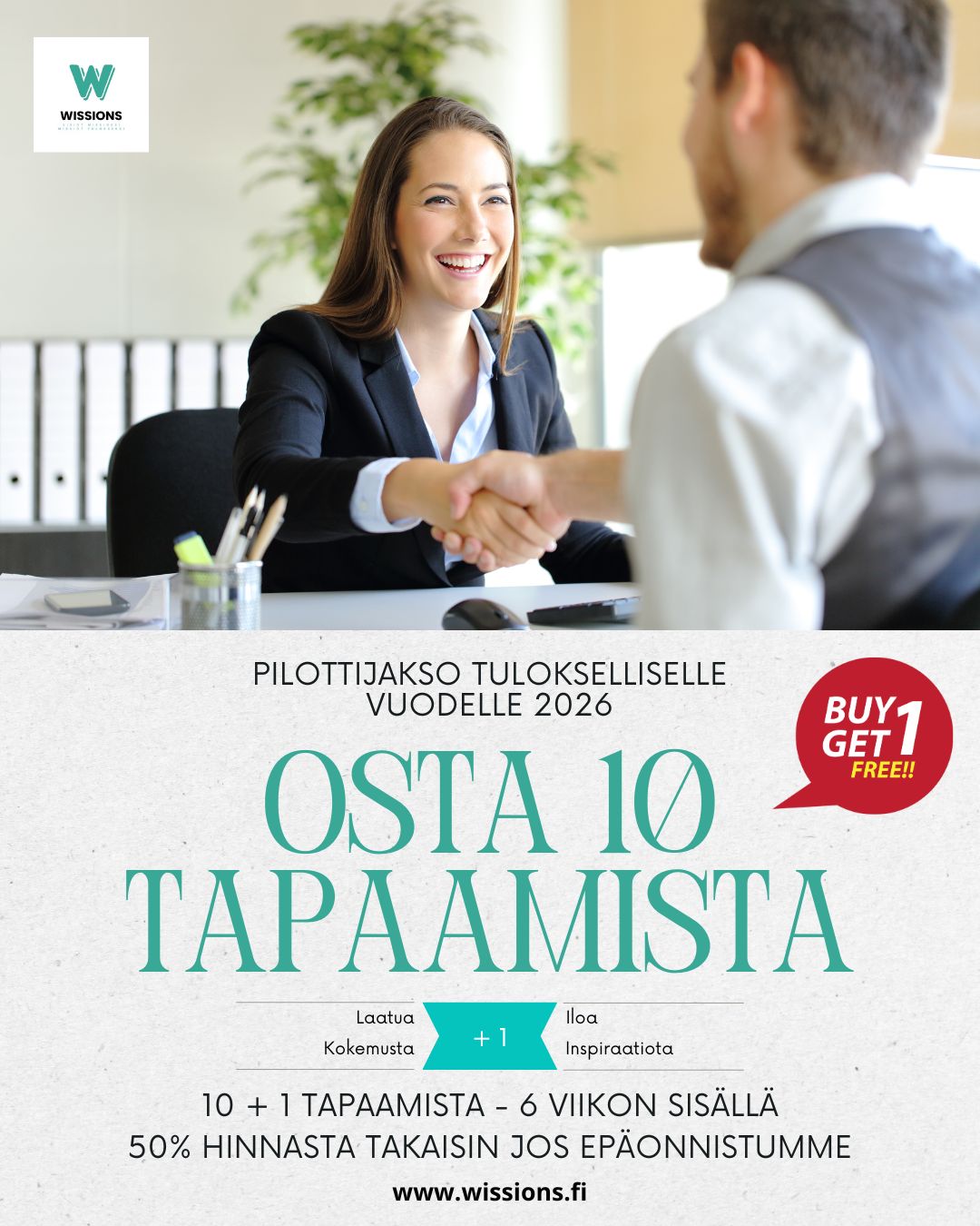 Mikäli emme toimita koko sovittua tapaamismäärää sovitun ajan puitteissa, palautamme 50 % maksusta (laskutusluvan kautta).